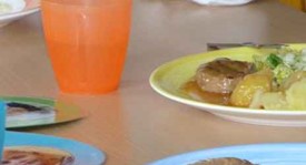 Durch die AG "Kinderparlament" gibt es gelegentlich (einmal im Monat) auch mal etwas anderes zu trinken beim Mittagessen. Apfelschorle, Fruchttee oder auch mal zuckerfreie Limonade wechseln sich dabei ab.